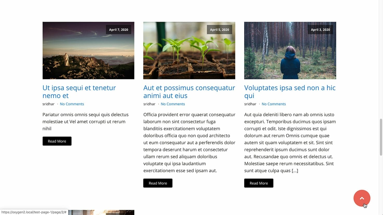 The link fades in on the bottom right-hand side of the content area, after the browser window has been scrolled beyond a certain point, and remains fixed during scrolling.
